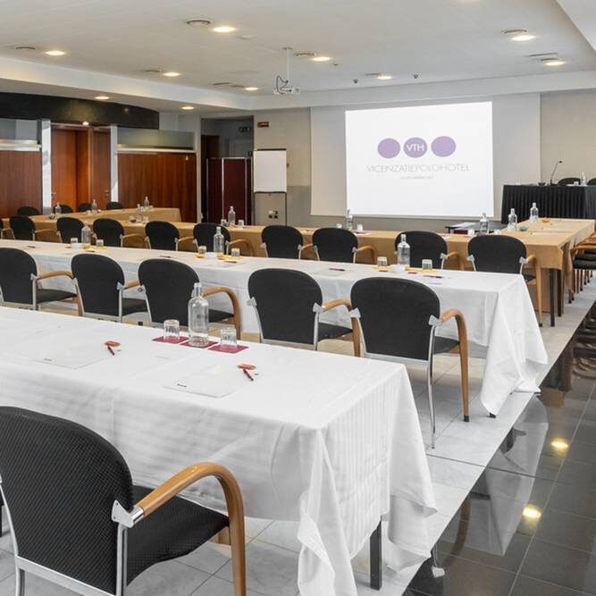 At Hotel Tiepolo in Vicenza, organizing conferences, conventions, meetings, and exhibitions means relying on an experienced team and efficient facilities, fully equipped for events of any kind. Our conference center can host up to 800 guests across 4 modular rooms, all fully outfitted with the latest technology, including video projector, audio console, microphones, flip chart, and Wi-Fi.