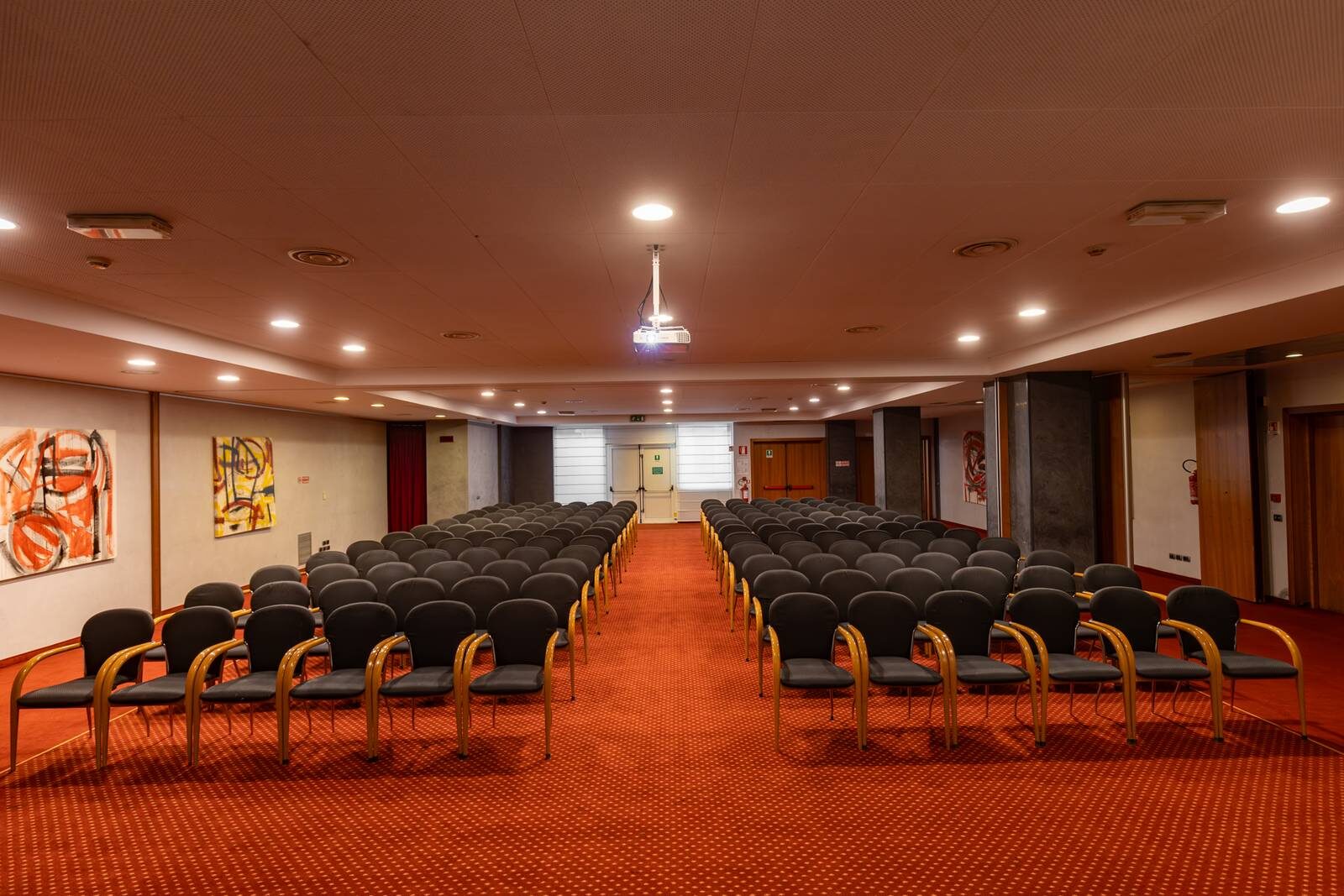 The Valmarana Room is a versatile space, ideal for hosting all types of events — from small corporate meetings to large-scale conferences. Thanks to its modular layout, the room can be divided into two sections: the full configuration (Valmarana 1 + 2) accommodates up to 300 guests, while the reduced setup with Valmarana 1 alone can host up to 100 people.